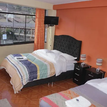 Hostal Qorisonqo Inn Ollantaytambo提供豪华特大床房间,舒适三人房间 和双床房间。